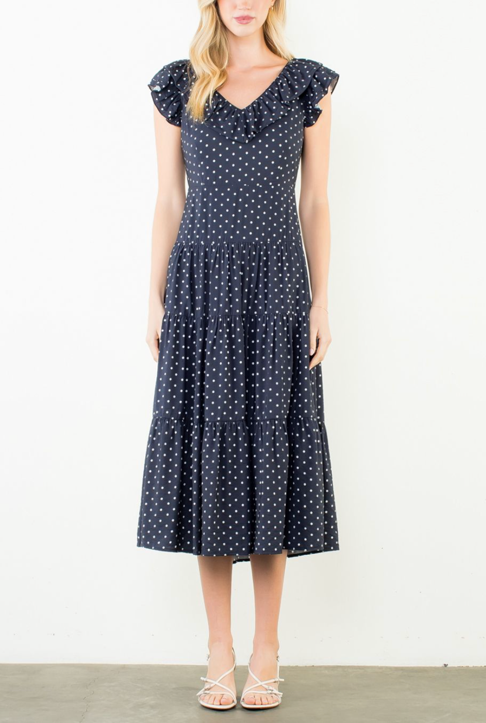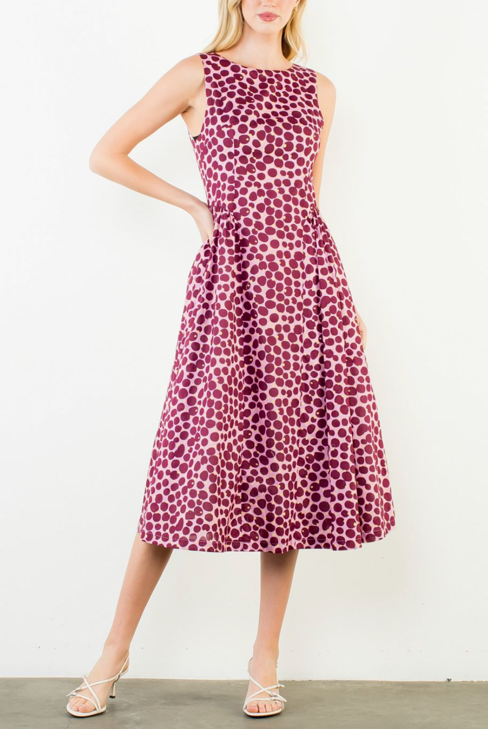 THML OLIVIA SPOTTED MIDI DRESS