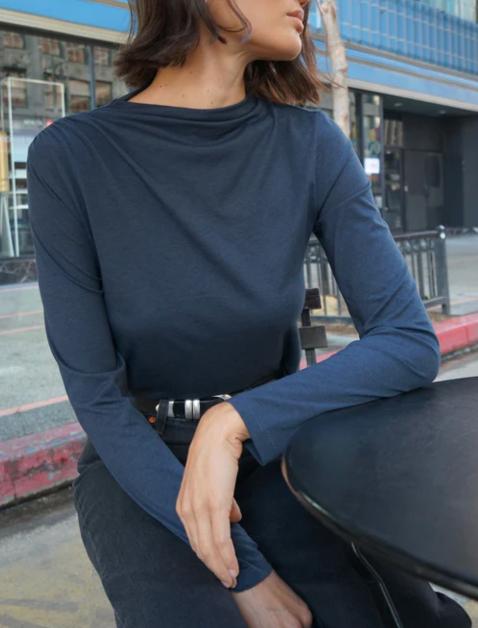 LILLA P ROUNDED HEM MOCK NECK