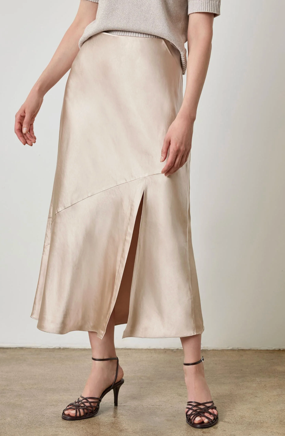 LILLA P SATIN SLIT FRONT SKIRT
