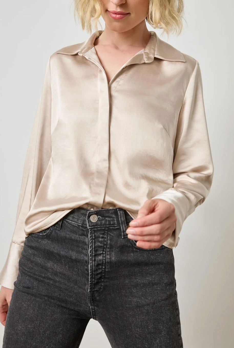 LILLA P SATIN BUTTON DOWN